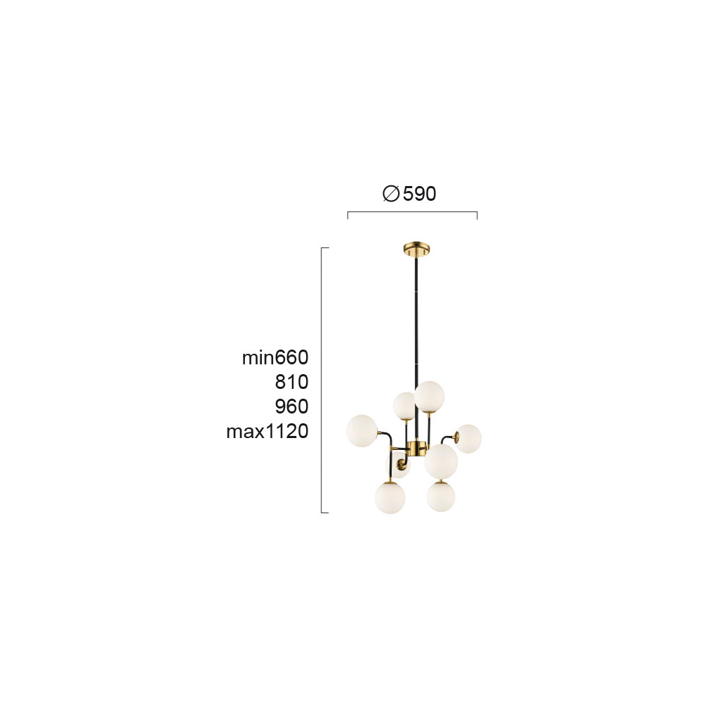 Το φωτιστικό Hariet, με το οπάλ ματ γυαλί, τη μαύρη ανάρτηση και τις χρυσές λεπτομέρειες, υπόσχεται να μαγνητίσει τα βλεμματα, δημιουργώντας ένα εντυπωσιακό φωτιστικό αποτέλεσμα.