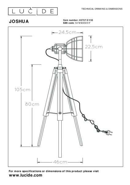 Ένα φωτιστικό δαπέδου που μπορείτε να περιστρέψετε και να ρυθμίσετε σε ύψος, το Joshua λάμπει πάντα όπου χρειάζεστε το φως. Η λάμπα είναι κατασκευασμένη από υψηλής ποιότητας ξύλο. Το φινίρισμα με μια μεταλλική πινελιά ταιριάζει απόλυτα σε ένα ρουστίκ ή βιομηχανικό εσωτερικό. Ο δημιουργικός σχεδιασμός του σας θυμίζει τρίποδο κάμερας. Αυτό διασφαλίζει ότι το Joshua θα είναι το highlight του καθιστικού, του υπνοδωματίου ή της κουζίνας. Αυτό το φωτιστικό δαπέδου λειτουργεί εύκολα μέσω του διακόπτη στο καλώδιο. Συμβατό με φως LED.