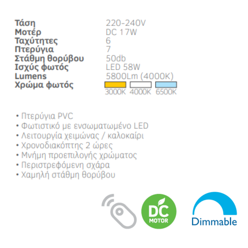 Με το τηλεχειριστήριο που διαθέτει θα είστε σε θέση να ρυθμίζετε άνετα από απόσταση οποιαδήποτε παράμετρο του ανεμιστήρα επιθυμείτε.