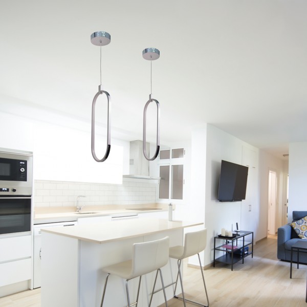 Πρόκειται για ένα χρυσαφί μεταλλικό κρεμαστό φωτιστικό μίνιμαλ σχεδίασης. Η λευκή ακρυλική του επιφάνεια καλύπτει τον LED φωτισμό θερμής απόδοσης.