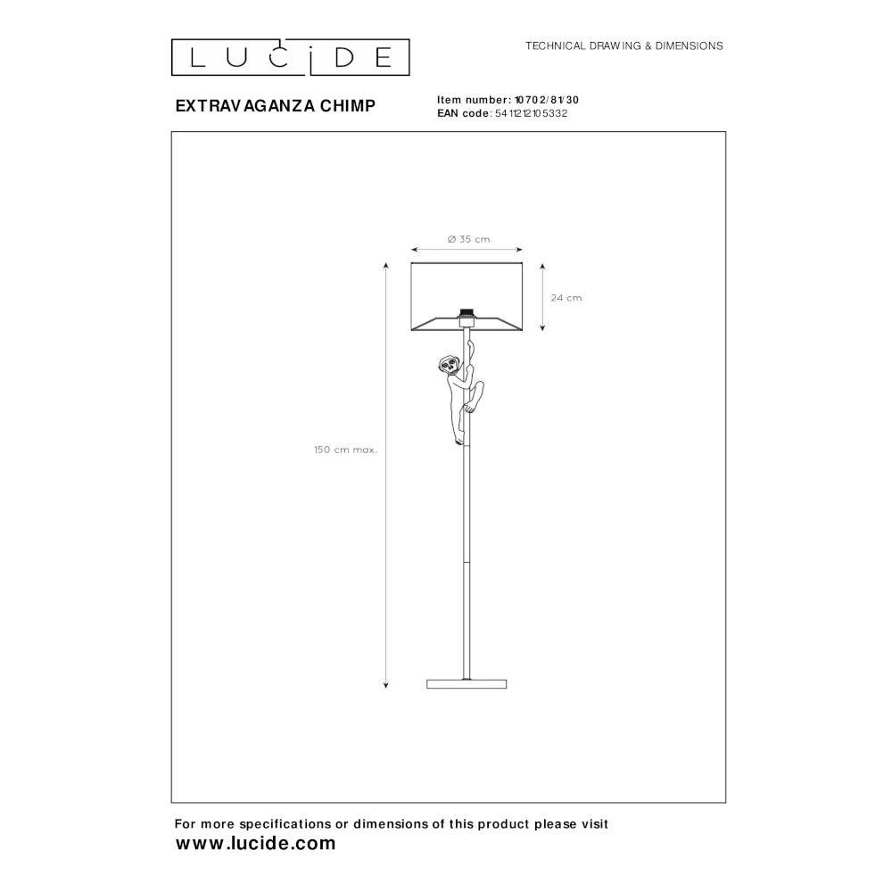 Adding flair to a modern interpretation of a classic floor lamp? This monkey is happy to do so. This standing lamp from the series Extravaganza Chimp brings a playful wink to your interior. Whether your home is classical or contemporary: time to monkey around. The light point is surrounded by a cotton lampshade, for a warm appearance. The lamp spreads attractive light. Not surprisingly, the plastic chimpanzee climbs eagerly like a accomplished acrobat. He does this via the metal rod, which extends from the base to a height of one and a half metres. After plugging it in, you can easily switch the floor lamp on or off with the switch on the cord.