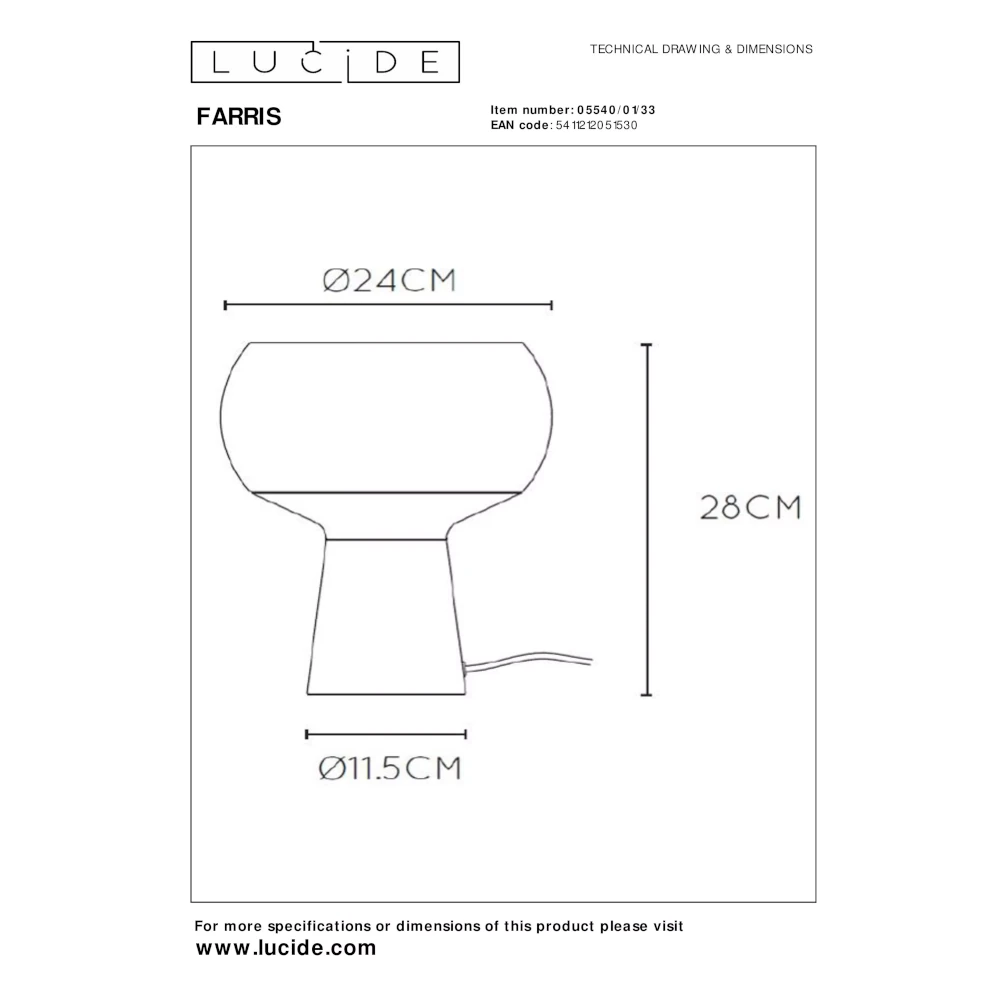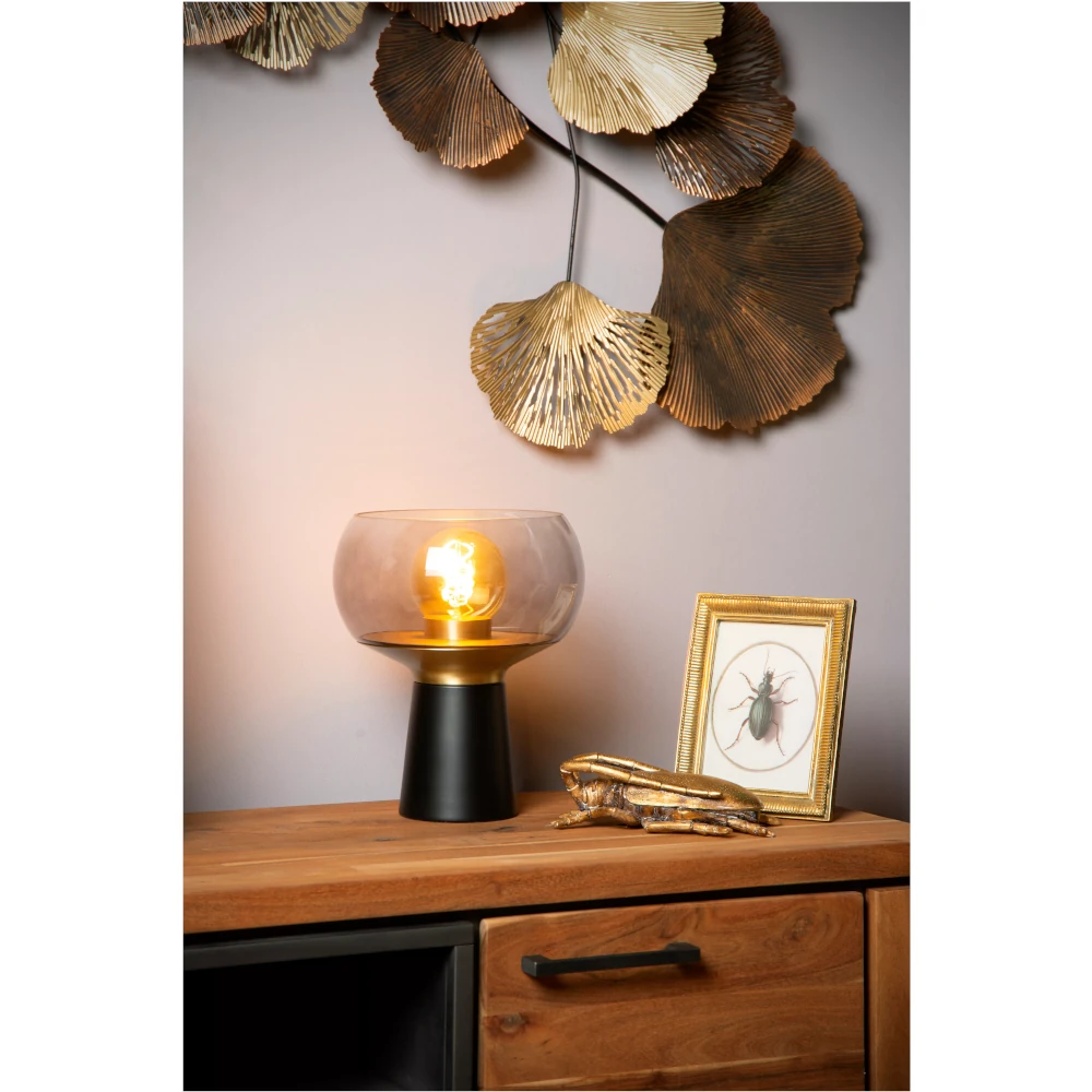 Farris sets you to dreaming of cosy summer evenings on the terrace around a fire basket. With this table lamp, you bring those warm moments indoors, even on the harshest autumn or winter days. Its playful and somewhat retro design is formed by high-quality fumé glass and steel. Due to the semi-circular lampshade, the light source is clearly visible, and this table lamp radiates an extremely fine atmosphere. You turn the lamp on and off with the switch on the cord. Cosy moments? They start with Farris.