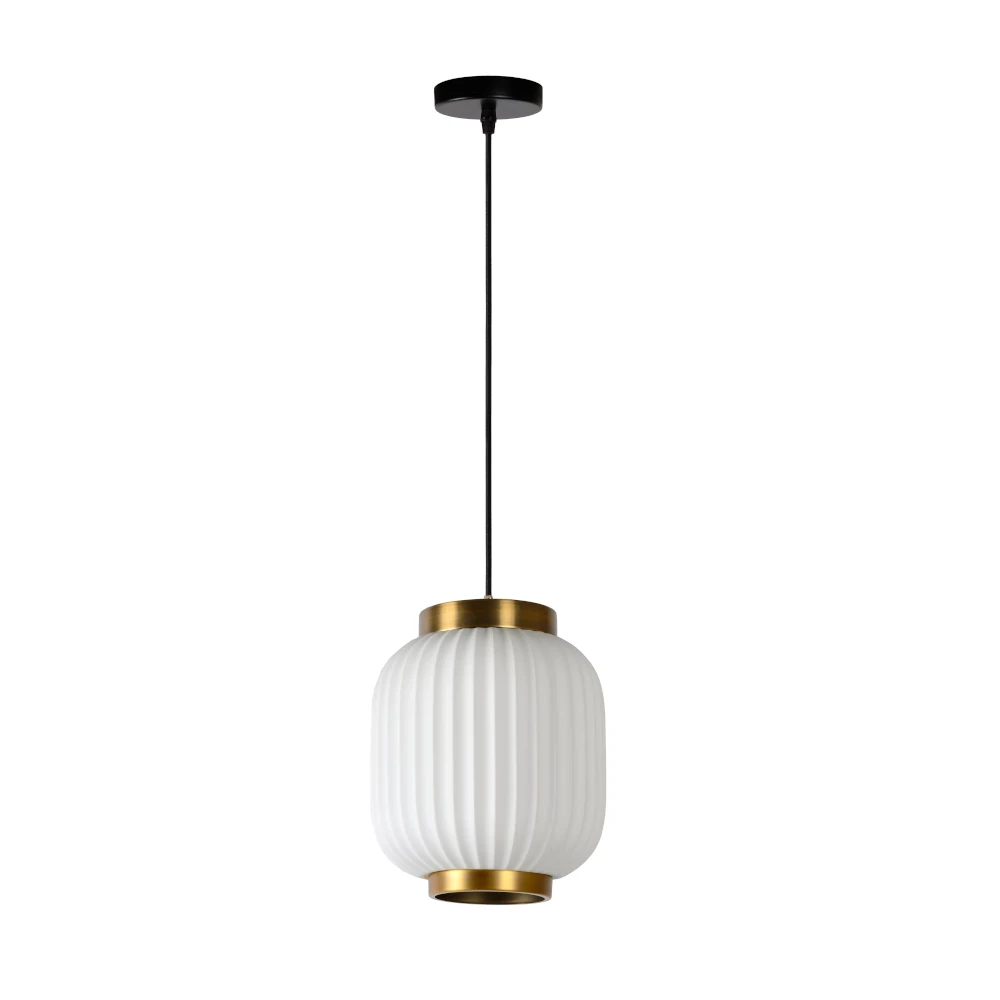 The cosiness of a lantern and the class of porcelain. These are the two main elements of the Gosse hanging lamp. The ribbed porcelain casing is trimmed at the top and bottom with a metal edge. For an extra stylish look. Gosse’s sophisticated design ensures a diffuse distribution of the cosy light. The glow of the light source is muted through the porcelain, while the lamp casts its light through the open underside. You adjust the hanging lamp from 50 to 170 centimetres high and can easily connect it to a dimmer.