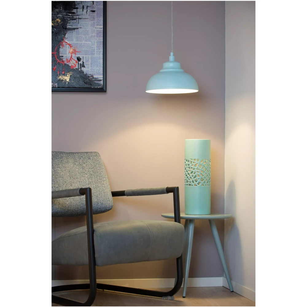 A functional pendant lamp with a retro feel. This modern pendant light puts a radiant accent on your lounge or dining table, so that sociably sitting together is better paired with atmosphere. In modern interiors, Isla provides a soft note, which you control completely via the dimming feature. The E14 fitting accepts a bulb of 40W, which provides warm lighting in the living room or dining room. The pendant light is also available in several other colours.