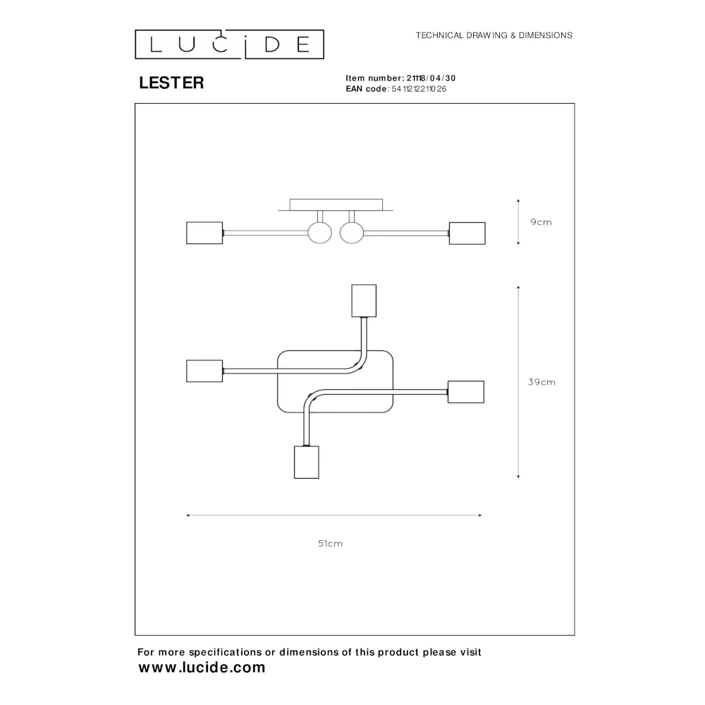 Lester shoots off in all directions. Literally. This flush ceiling light of high-end metal has four light bulbs, one for each cardinal direction. The clean mounting plate and elegant, minimalist design turn Lester into a modern addition to your kitchen, living room or bedroom. Filament bulbs bring out the best of this creative design. You can easily connect flush ceiling light Lester to a dimmer to create the perfect mood at the touch of a button. That is 360° of fun.