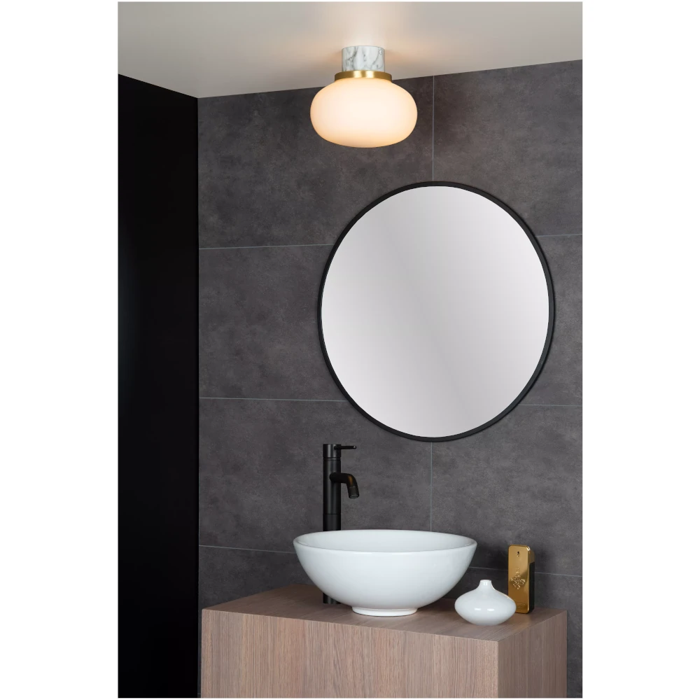 A bathroom lamp with attitude? Lorena mixes a bit of diva allure with a modern twist. Opt for a version with transparent coloured glass and enjoy the view of the filament bulb. Or go for an opal version for an even warmer atmosphere. The ceiling lamp is 23 centimetres wide and 20 centimetres tall. Lorena is specially designed for a bathroom environment and completely safe in damp areas. Would you like to give it a different place in your house, such as in the WC or at the sink for your guests? We won’t stop you.