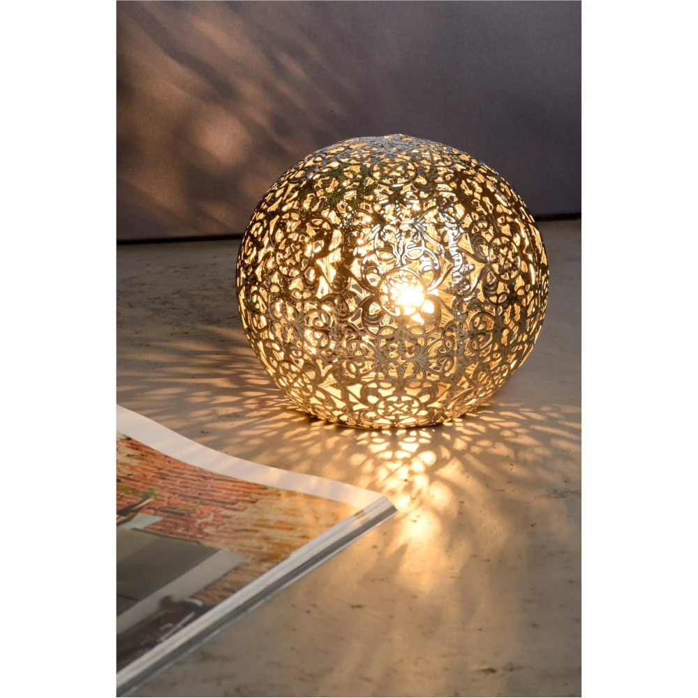 This elegant table lamp stands out thanks to a fine structure made of metal. The round sphere is surrounded by a mesh of graceful curls and motifs. That creates a very luxurious look. The table lamp is perfect as extra mood lighting in your living room, in a niche of the wall cabinet or as a decorative element in your bedroom. Paolo, that is the name of the table lamp, is easy to operate thanks to the switch on the cord. In a classic or rural interior, this table lamp is very beautiful, but even in modern homes, the table lamp feels perfectly at home.