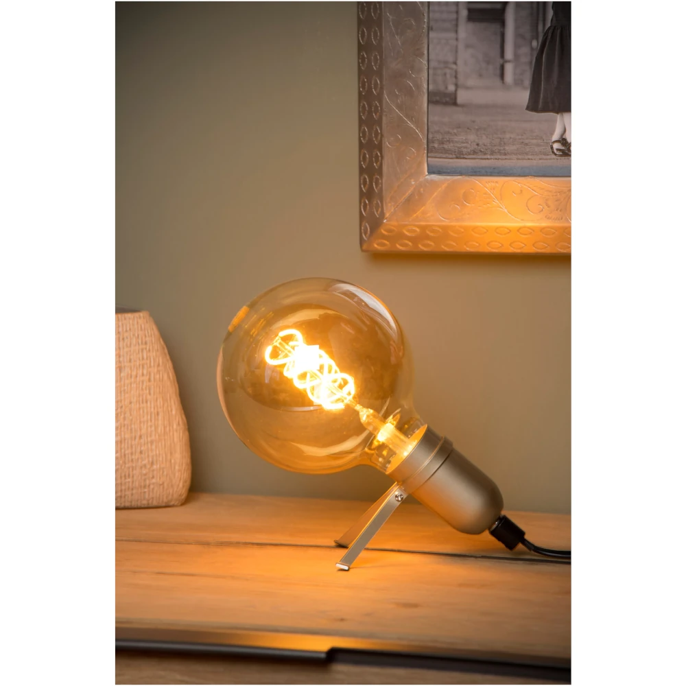 A cute name for a cute little lamp. This table lamp called Pukki is barely 9 centimetres tall. The fact that it finds a place anywhere in the house goes without saying thanks to its small dimensions. The compact fitting is embedded in a compact metal shell that rests on two spread legs. That fully describes the lamp base as well as the complete design. How simplicity can adorn. Pukki comes with a filament bulb. This gives you an amazing atmosphere from your small lighting.