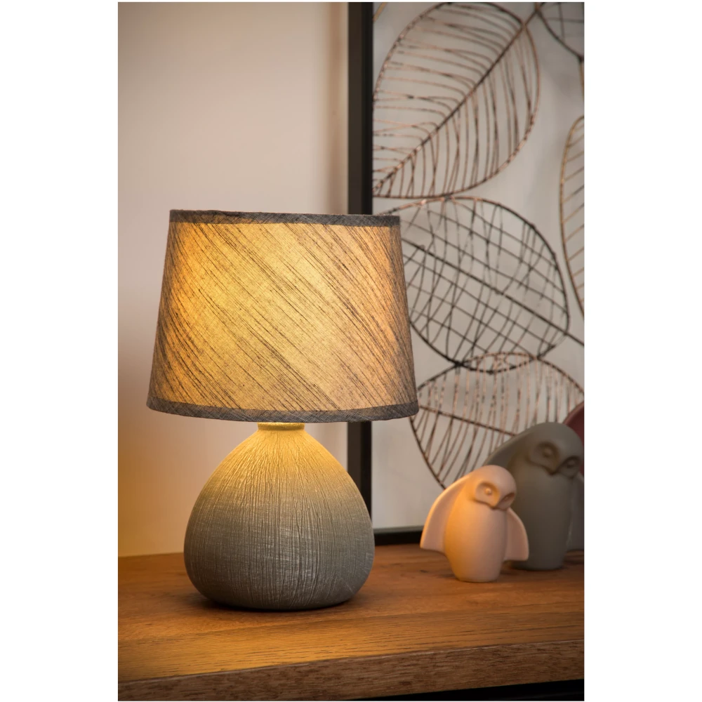 Calming colours, natural materials and an elegant shape all come together in this compact table lamp. With a height of 26 centimeters, this lamp called Ramzi can adorn any table. You can use it as atmospheric lighting besides the TV or as a reading lamp at night, since the light is evenly distributed above and below. You enjoy a rural design made of high-end ceramics. You can turn Ramzi on and off with a switch in the cord. Available in multiple colours.
