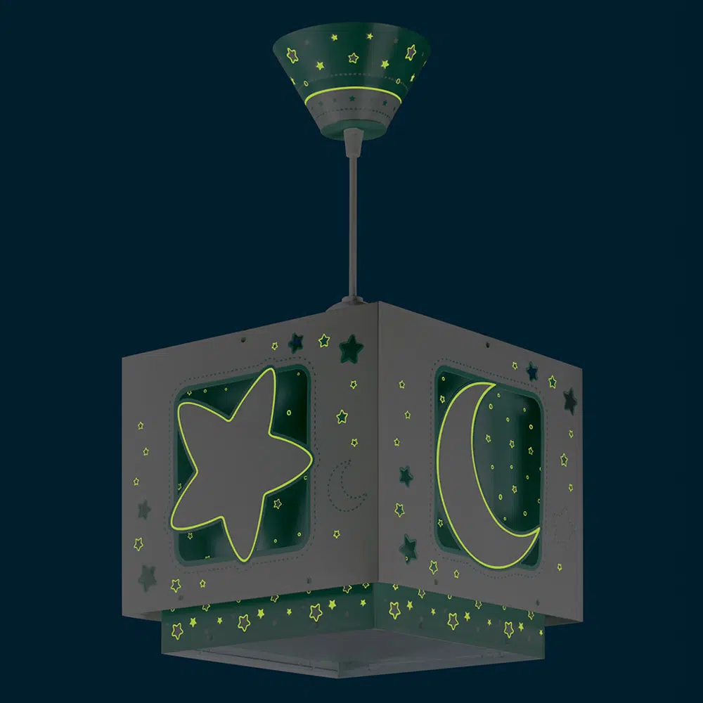 Προσθέτει διασκεδαστικό χαρακτήρα και χρώμα σε κάθε παιδικό δωμάτιο ακόμα και στο σκοτάδι με τα τυπωμένα στο εξωτερικό του τοίχωμα φωσφορίζοντα μέρη. Παρέχει ομοιόμορφο και άπλετο φωτισμό δημιουργώντας περιβάλλον που ενθαρρύνει τα παιδιά να επιδοθούν σε ότι τους αρέσει περισσότερο, διασκέδαση και δημιουργικότητα! Απόλυτα ασφαλές ώστε τα παιδιά να μπορούν να μελετήσουν, να παίξουν και να κοιμηθούν παρέα με τον αγαπημένο τους ήρωα. Το MoonLight Gray κρεμαστό φωτιστικό οροφής φωσφορίζον συμπληρώνει τα υπόλοιπα παιδικά φωτιστικά της συλλογής και είναι εξαιρετικά εύκολο στην εγκατάστασή του.