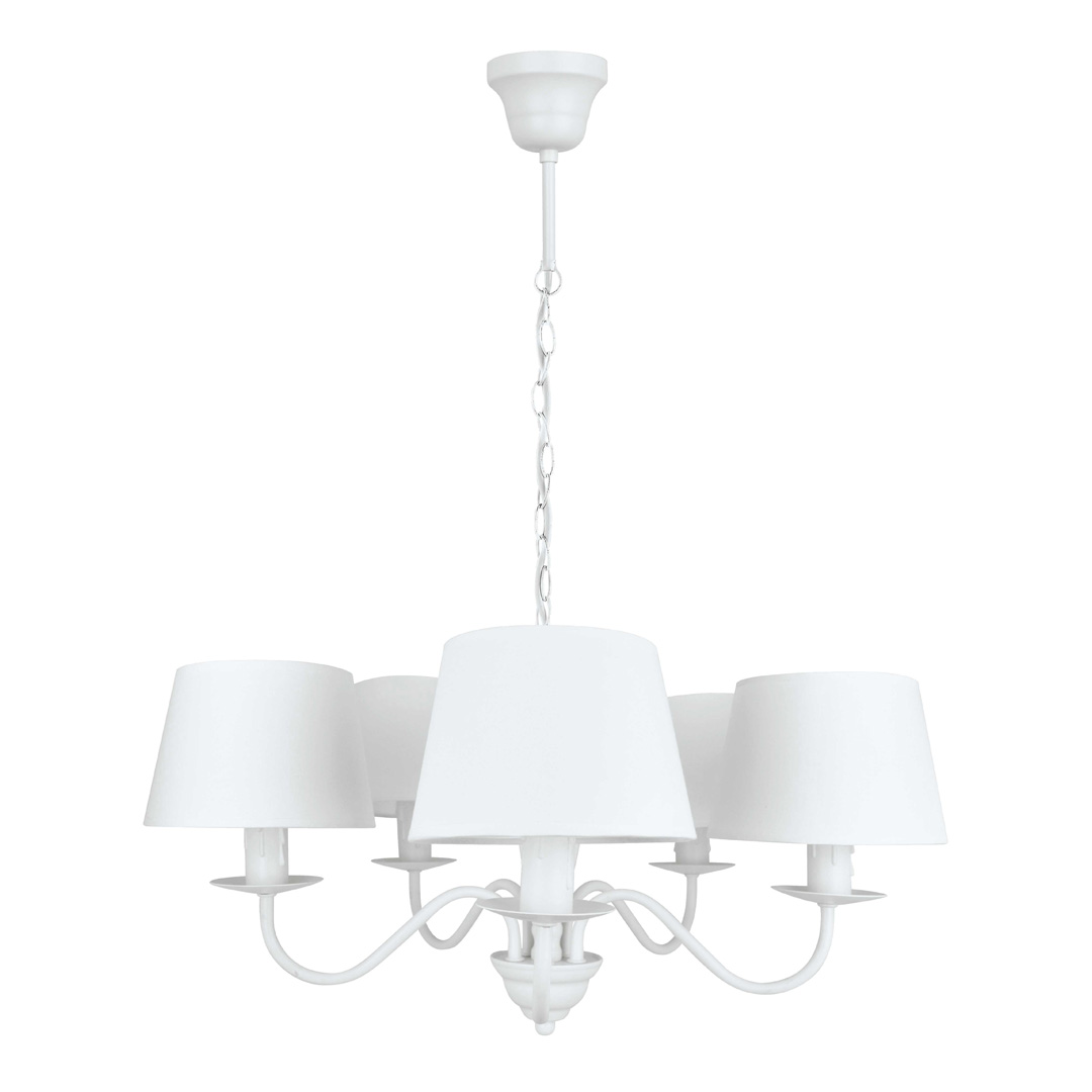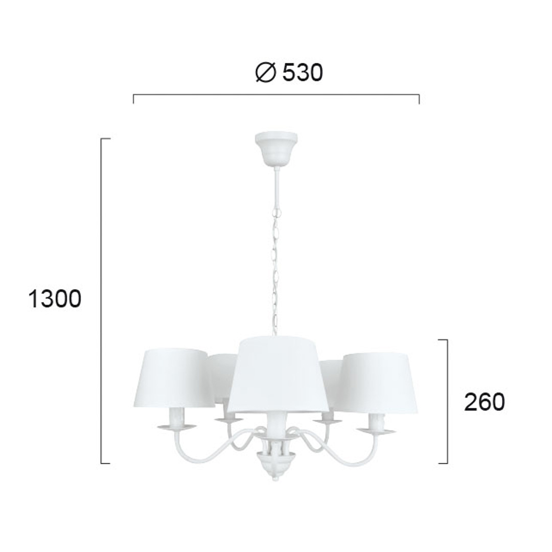 Το πεντάφωτο Reanna, κλασικού σχεδιασμού με λευκή ανάρτηση και καπέλο, ξεχωρίζει για την λιτότητα και κομψότητα του, στον χώρο σας.