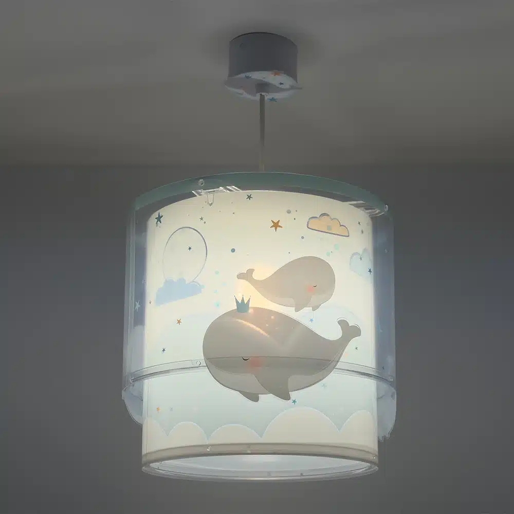 Καλωσορίστε το παιδί σας σε ένα δωμάτιο πλημμυρισμένο από μαγεία με αυτό το παιδικό φωτιστικό οροφής με θαλάσσιο θέμα και χαριτωμένες φάλαινες, κατάλληλο για γενικό φωτισμό. Είναι διπλού τοιχώματος με διάφανο το εξωτερικό του. Το Whale Dreams Blue φωτιστικό οροφής είναι κατασκευασμένο από συνθετικό υλικό αντοχής πολυπροπυλενίου και ανεξίτηλες εκτυπώσεις σε απαλούς χρωματισμούς. Παρέχεται διαχυτής φωτός, που προστατεύει τα μάτια των παιδιών μικρότερων ηλικιών αλλά και προσφέρει ομοιόμορφο φωτισμό σε κάθε παιδικό δωμάτιο. Το κιτ ανάρτησης είναι πλήρες και περιέχει σετ γάντζου, καλώδιο ρυθμιζόμενο στο ύψος καθώς και ροζέτα κάλυψης σημείων σύνδεσης & στήριξης. Το Whale Dreams Blue φωτιστικό οροφής συμπληρώνει τα υπόλοιπα φωτιστικά της συλλογής, τοποθετείται εύκολα και είναι κατασκευασμένο εξ ολοκλήρου στην Ευρώπη.